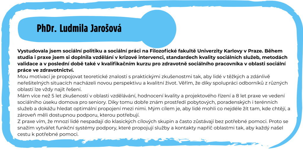 Naším společným cílem je zajistit osobám se sníženou soběstačností a jejich rodinám důstojný a spokojený život v domácím prostředí, které mají rádi.